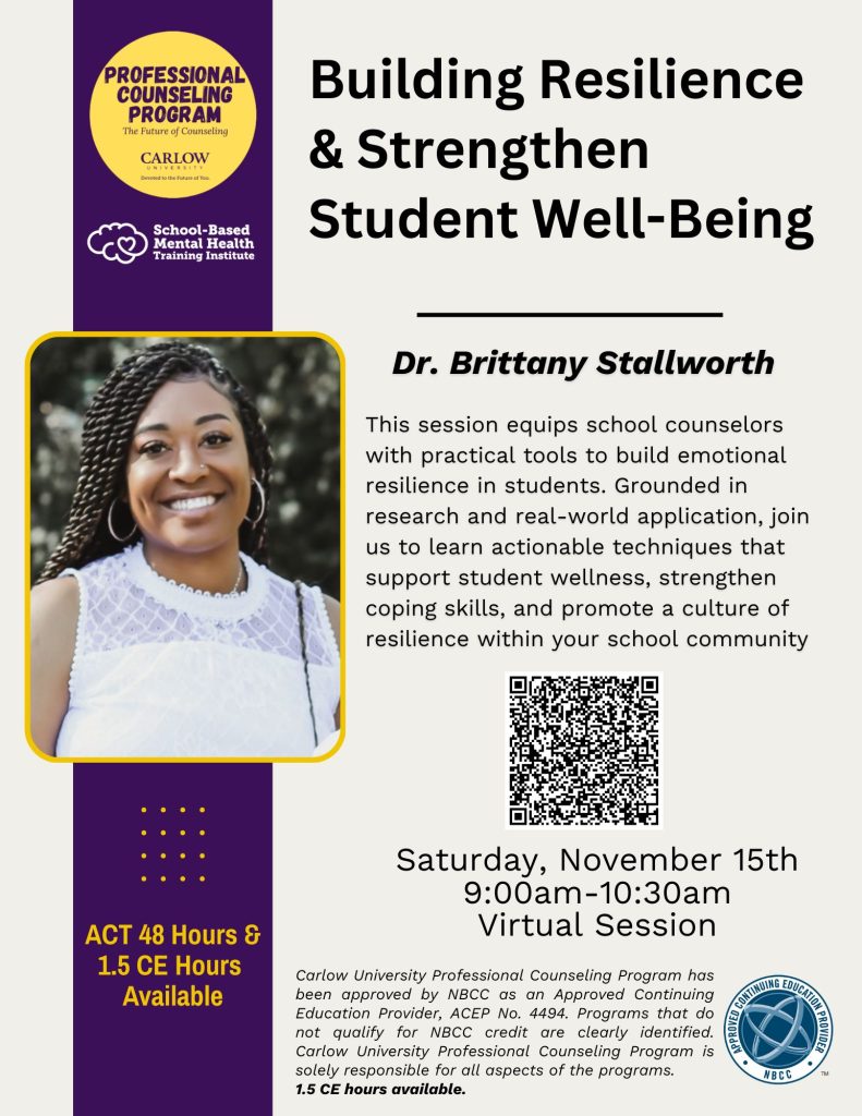 Presentation Description: This session equips school counselors/personnel with practical tools to build emotional resilience in students. Learn how to identify signs of emotional struggle, support strategies, and foster protective factors that help students thrive. Grounded in research and real-world application, this presentation offers actionable techniques to support student well-being, strengthen coping skills, and promote a culture of resilience within your school community.